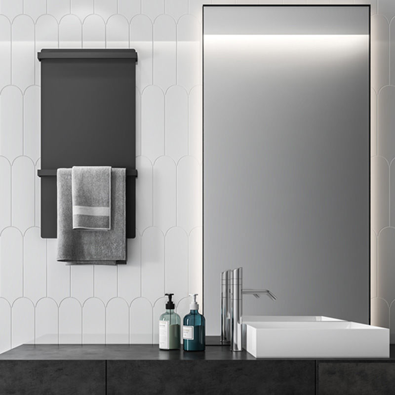 El toallero eléctrico de 120W en acabado negro mate destaca por su diseño en panel plano, ideal para baños modernos que buscan una estética elegante y funcional. Su superficie lisa proporciona un calor uniforme, manteniendo las toallas secas y confortables.