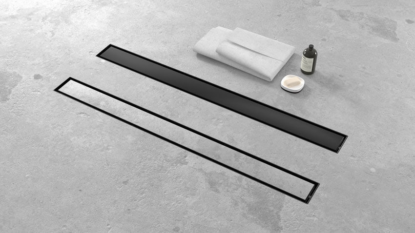 • Calha de duche SLIM 600 mm em inox com acabamento preto mate